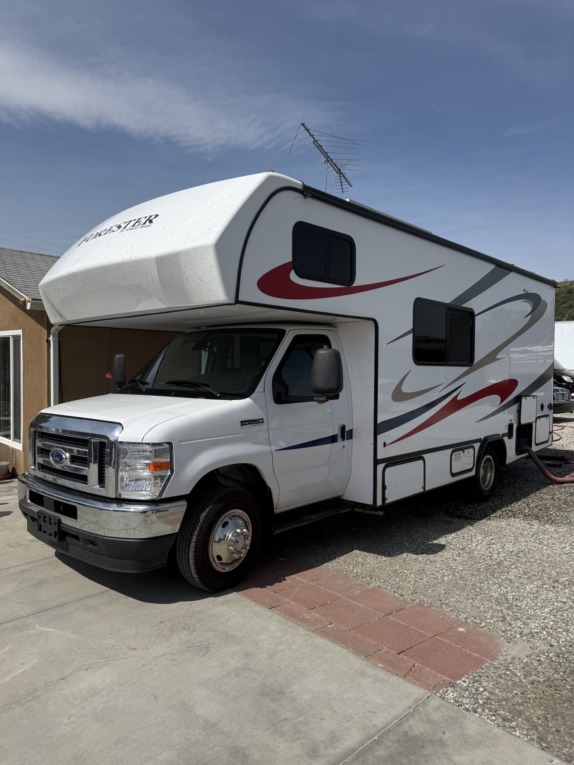 The RV comes, 1 fresh water hose, 1 dump hose and electric cord with 30 amp converter. It also has the following items INCLUDED in the rental: , outdoor carpet, extra RV toilet paper, waste treatment chemicals, tow package. It has a V8 Ford engine, . Fully self-contained for a weekend in the middle of nowhere. There is an onboard generator. The RV holds 55 gallons of fuel, 37 gallons of fresh water, 21 gallons of black waste & 24 gallons of grey waste water, 18 gallon propane tank 6 gal quick-recovery water heater tank. Tons of storage inside and out. New tires, with roadside assistance for any tire issues. 100 miles free per night .45/mile additional no other hidden fees like the large agencies. $1,000 security deposit, a holding deposit of one night rental will secure your dates. Bring your own insurance provided by an “insurance binder” at no charge or purchase insurance for approximately $35/day.